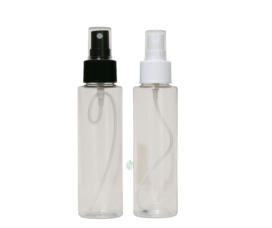 Flacon 100 ml PET transparent avec spray Noir/ Blanc