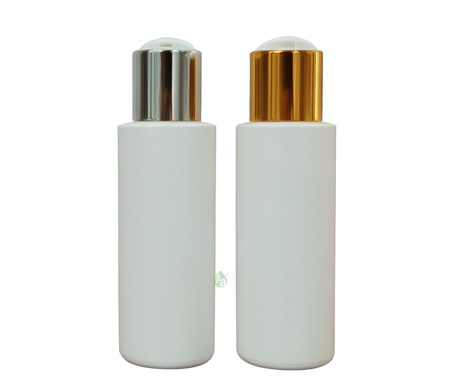 Flacon 100ml en plastique Blanc avec bouchon Disk-Top Doré/ Argent