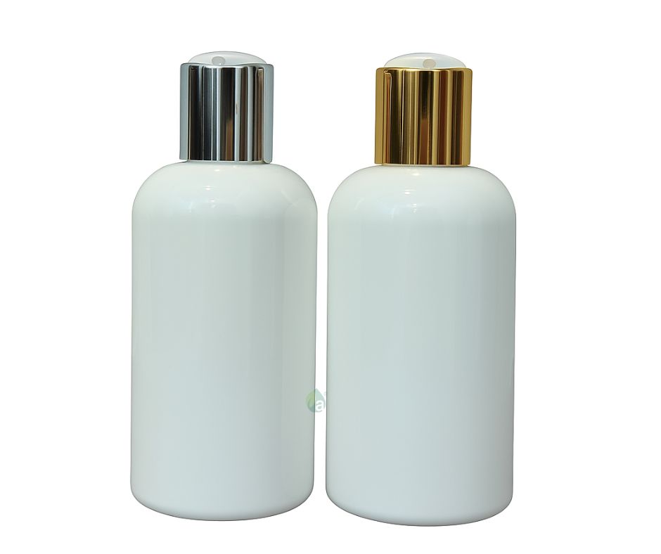 Flacon 250ml Bombé en PET Blanc avec bouchon Disk-Top doré/Argent
