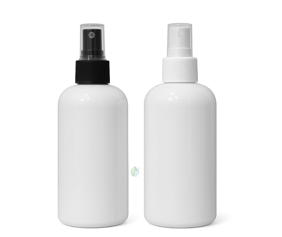 Flacon 250ml Bombé en PET Blanc avec spray Blanc/ Noir