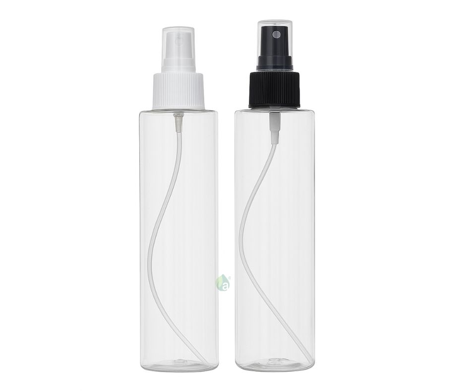 Flacon 250ml en PET Transparent avec spray Noir/ Blanc