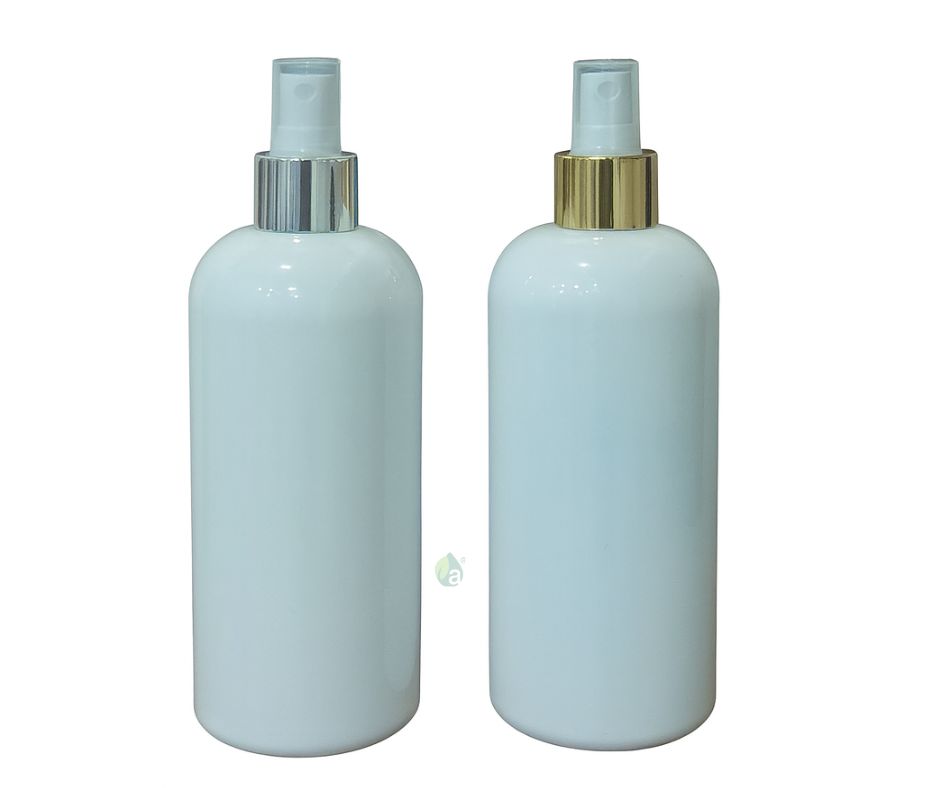 Flacon 400ml en PET Blanc avec spray Doré/Argent