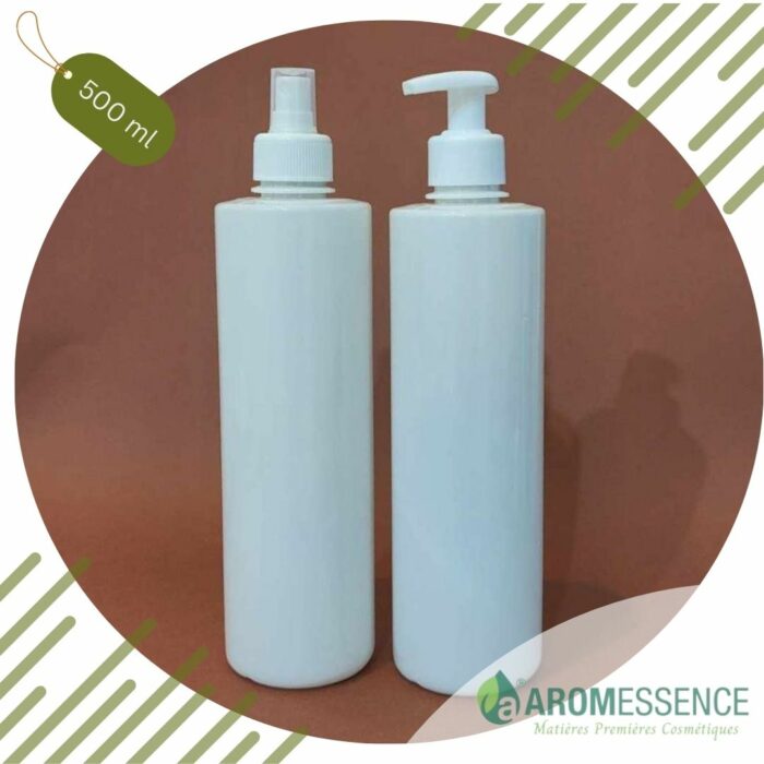 Flacon 500 ml Rond en PET Blanc avec pompe Lotion/ Spray