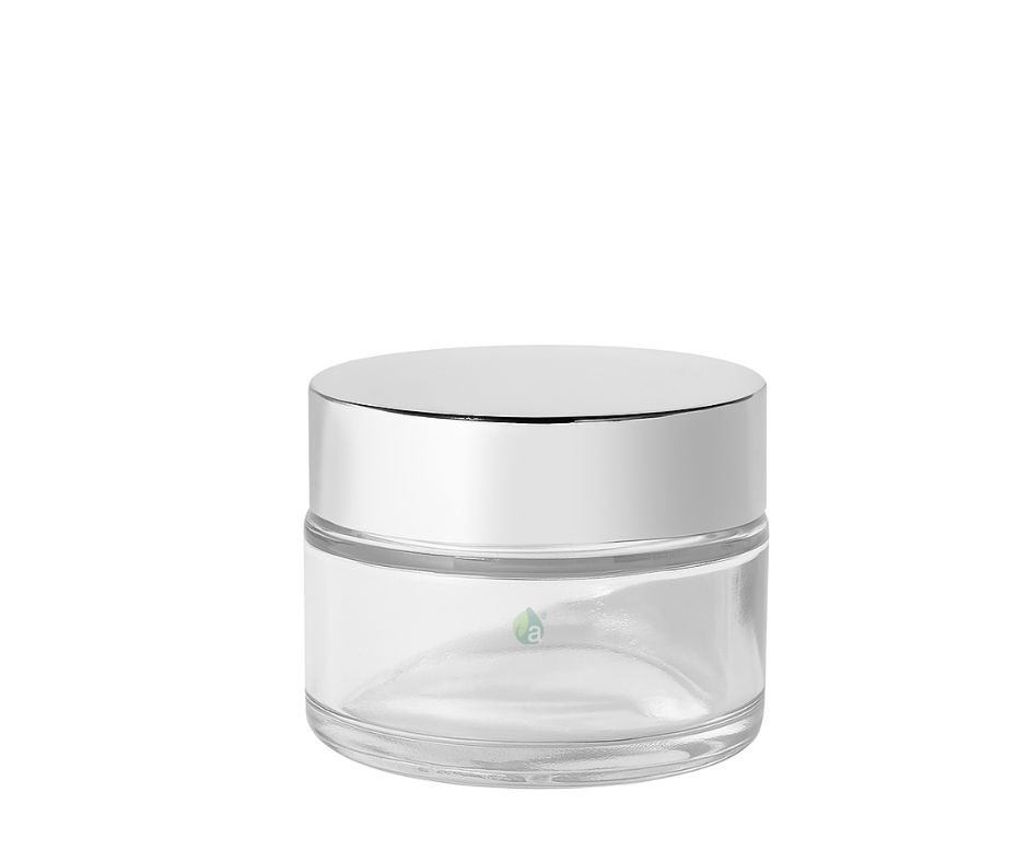 Pot 50g en verre transparent avec couvercle Argent (+ contre-couvercle)
